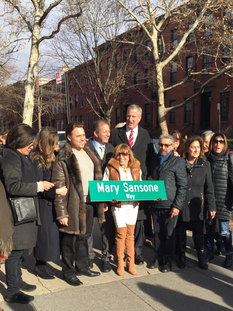 A week before Christmas, when the New York sun is perpetually in your eyes, I was standing in a crowd at the corner of Henry & DeGraw Streets, an intersection that was about to be dedicated to the memory of Mary Crisalli Sansone.