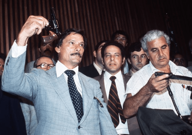 At about 10:00 PM Berkowitz approached the car holding a paper bag containing a .44 caliber revolver. His intention was to drive down to Riverdale to find his next victim, then wander out to the Hamptons, do the Hustle, and spray a disco dance floor with large caliber projectiles. As Berkowitz stepped into his Ford, Detective Falotico rushed forward and pointed his .38 caliber snub-nosed revolver at Berkowitz’s head. Longo and Gardella pointed their service revolvers from the passenger side while police cruisers rolled up behind them. Whereupon Berkowitz said, “Well, you got me.”