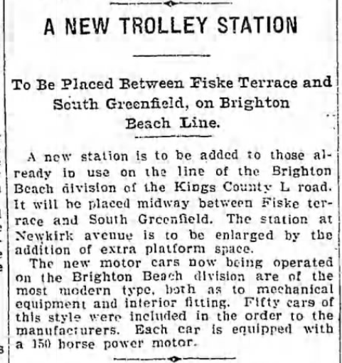 In a familiar pattern, the BRT, in the aftermath of its 1900 electrification of the Brighton line, established another stop in an area that was just about to be developed.