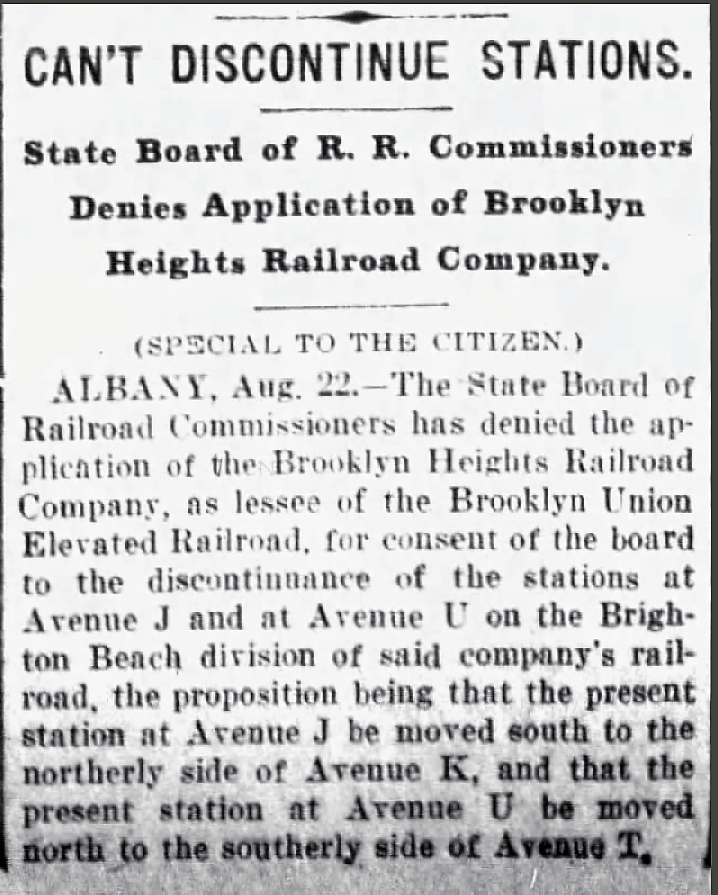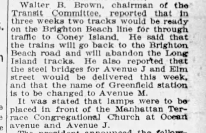 In 1907, during the grade crossing eliminations, Brighton trains would use the MBRR tracks and vice-versa while the roadbeds were being moved, per the news clip above, which also reports the station re-naming as Avenue M.