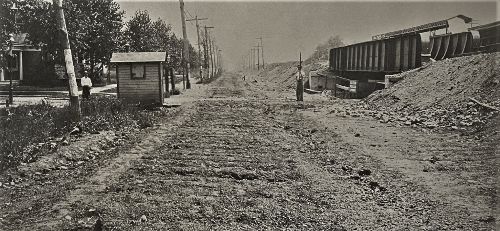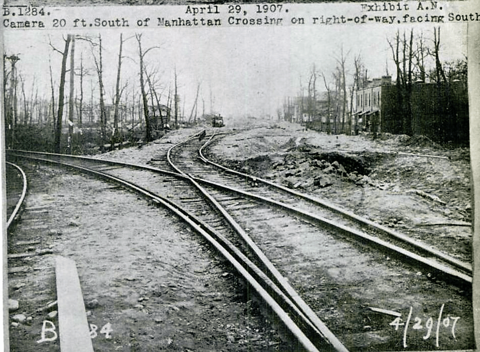 Photo above is looking south on MBRR trackage from Elm Avenue. The work to bring the two railroads closer together had just begun.