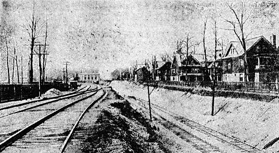 Above, looking north on the Brighton roadbed. The MBRR tracks are on the very far left where the fancy station sat. I wonder how many travelers sheltering there died trying to cross over the tracks to reach this Brighton platform.