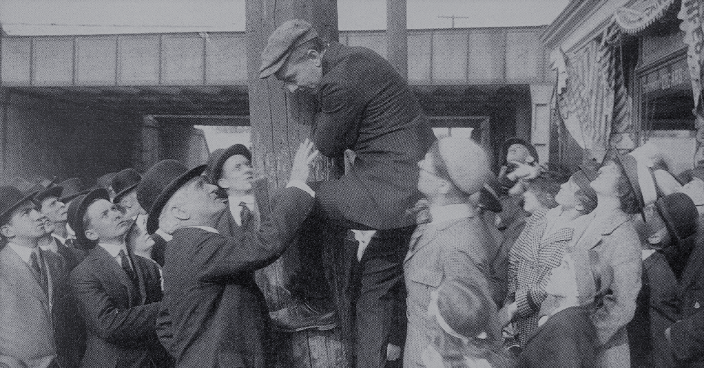 Above: Vitagraph filming on Elm Avenue & East 15th, looking east on Elm. One can see the separation between the two trestles in the upper background. The Brighton one is closer to the camera and is wider, carrying four tracks, compared to only two for the MBRR.
