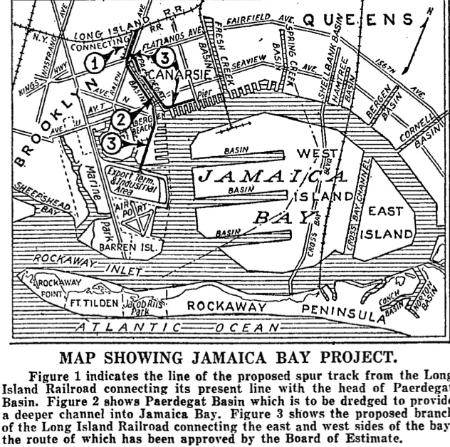 Another sewer, originating at Glenwood Road & Coney Island Avenue, would be a major part of the system needed to drain Flatlands, flowing to a plant at the Paerdegat Inlet, near the intersection of Ralph & Flatlands Avenues. From there the waste would be pumped to a new “Disposal Works Plant” located near Flatlands & Pennsylvania Avenues to mitigate the sewage before it discharged into the Bay, thereby satisfying the court mandate.