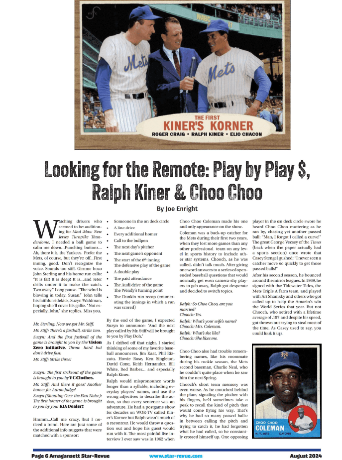 The most painful live interview I ever saw was in 1962 when Choo Choo Coleman made his one and only appearance on the show. Coleman was a back-up catcher for the Mets during their first two years, when they lost more games than any other professional team on any level in sports history to include other star systems (up until the upstart 2024 Chicago White Sox who sorely lacked the Mets legendary charisma ). Chooch, as he was called, didn’t talk much. After giving one word answers to a series of open-ended baseball questions that would normally get even camera-shy players to gab away, Ralph got desperate and decided to switch topics.