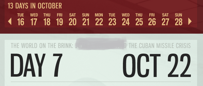 October 22, 1962. After U-2 flights show Russia-supplied missile sites in Cuba, a Naval quarantine is readied. A letter to Premier Nikita Khrushchev demanding removal of the missiles is then dictated to the White House telex operator by our 35th President, as his Cabinet huddles around him: “Listen, Nick, let’s talk about those missiles you gave Fidel. Unfortunately, I got a golf reservation I can’t break and I’m kinda booked solid for the next week or so with the book tour to promote Profiles of My Courage. I sent you a copy last week. Did you have time to read it yet? Be sure to look on page 240 where I call you a very strong Tsar. OK, gotta go.”